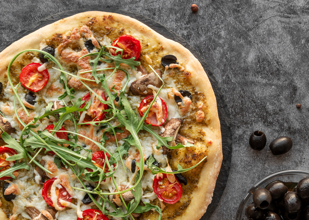 Chicken Breast, Feta Cheese, Tomato, Green Pepper, Red Onions & Black Olives