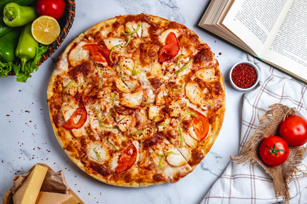 Chicken Breast, Feta Cheese, Tomato, Green Pepper, Red Onions & Black Olives