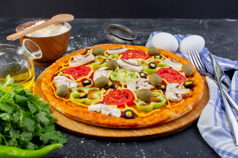 Mushrooms, Tomatoes, Green Peppers and Black Olives